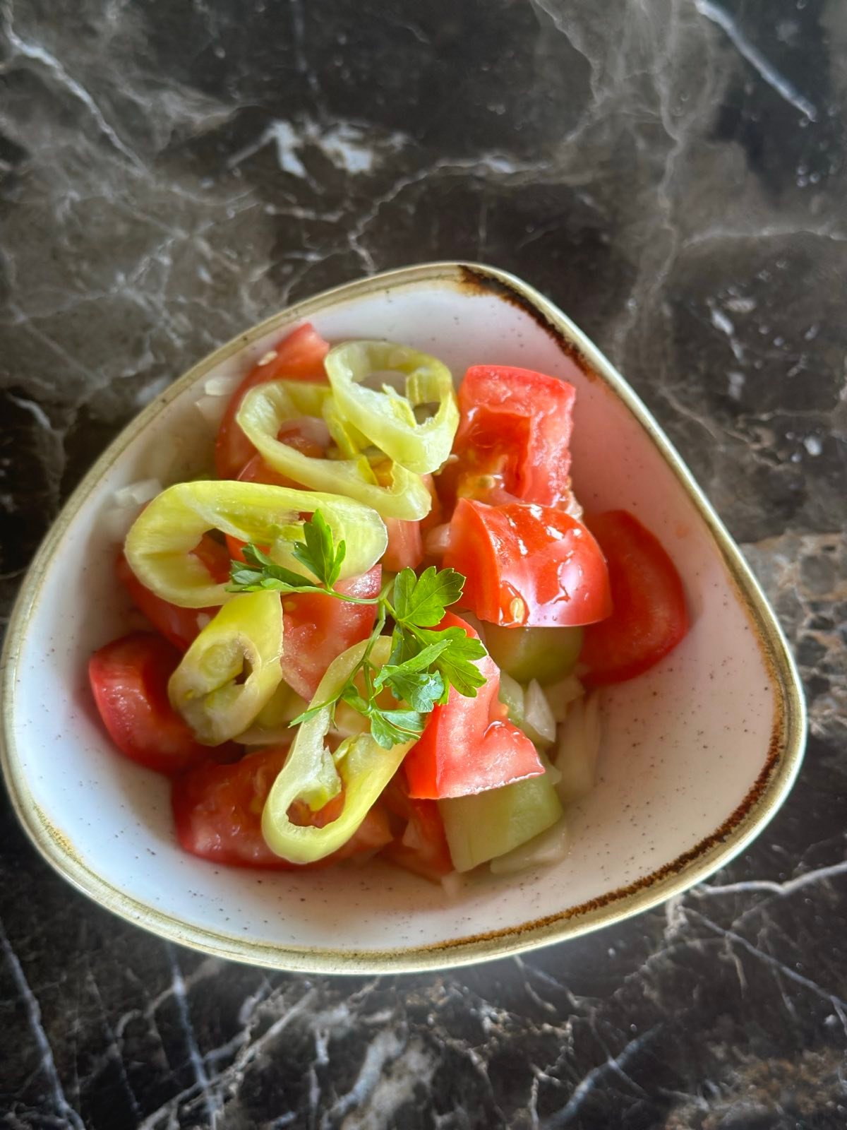 Paradajz, krastavac, crni luk, ljuta paprika, so, ulje