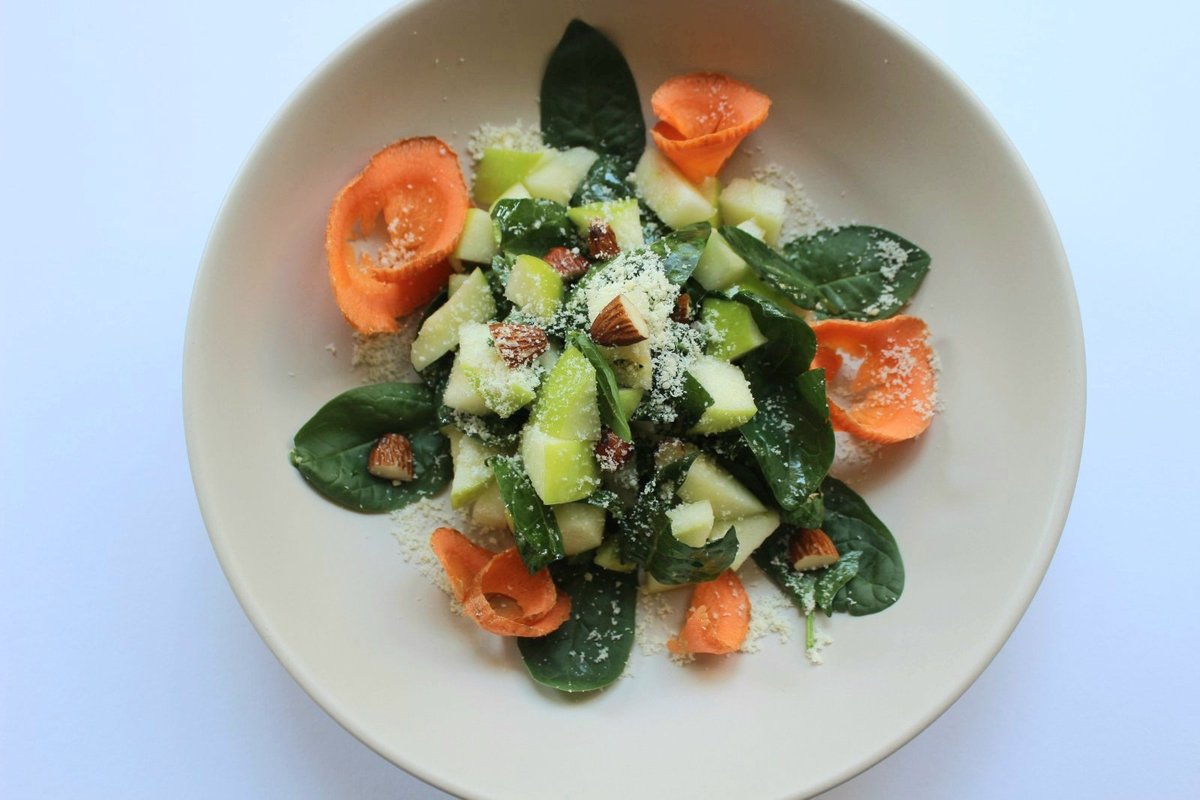 rukola,baby spanać,badem,zelena jabuka,parmezan,himalajska so