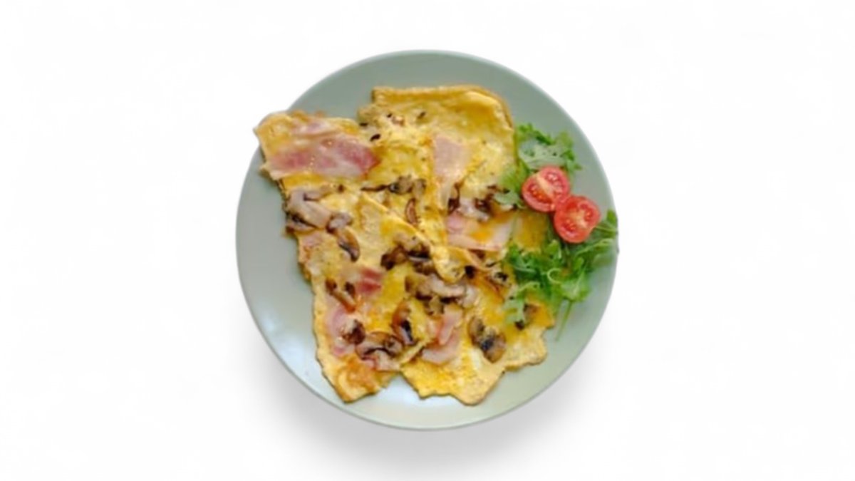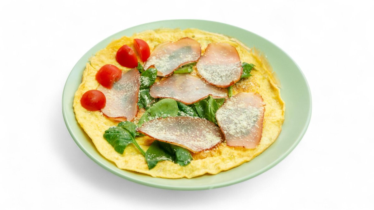 3jaja, pečenica, baby spanać, parmezan, čeri paradajz