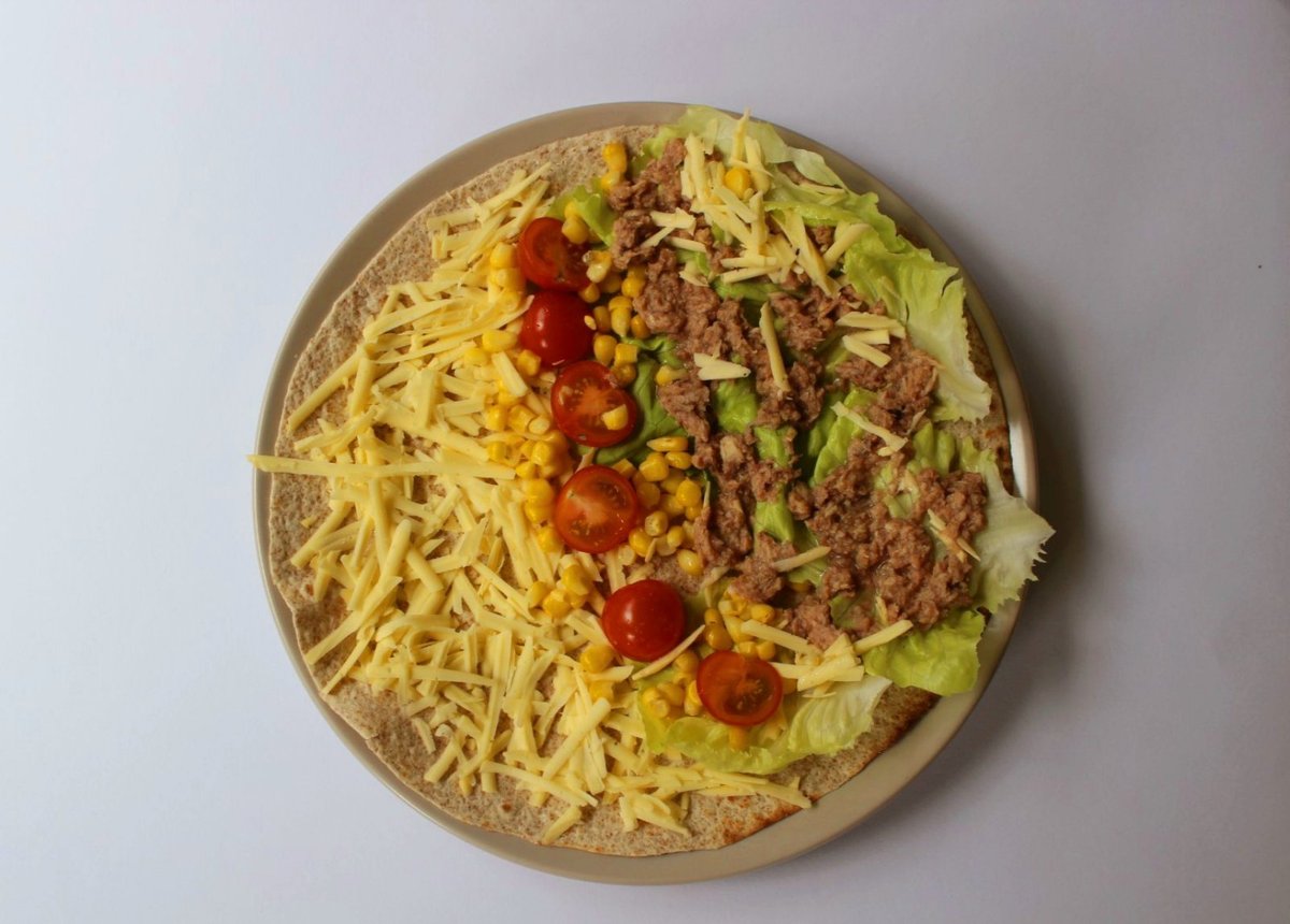 zelena salata,posni kačkavalj,tunjevina,krastavac,šargarepa,masline