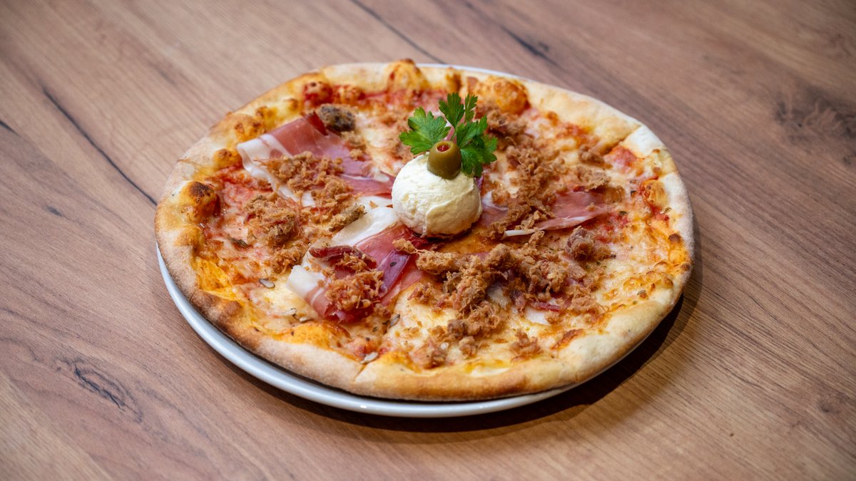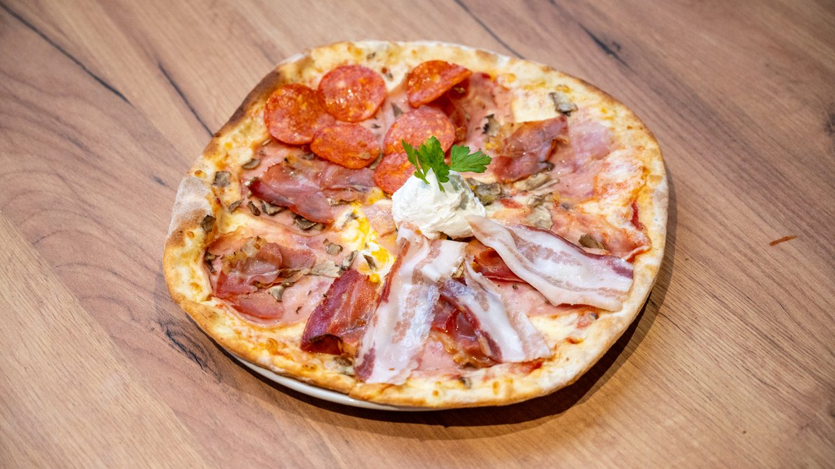 Pelat, kačkavalj, šunka, slanina, pršuta, pečurke, jaje, punjene ivice, susam