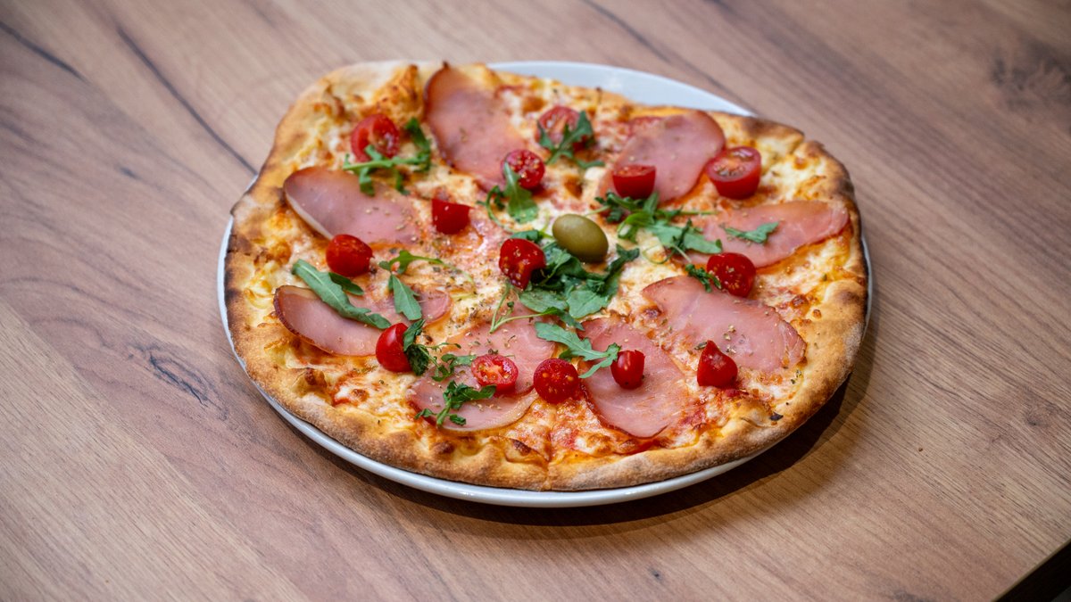 Pelat, kačkavalj, pršuta, čeri, rukola, origano