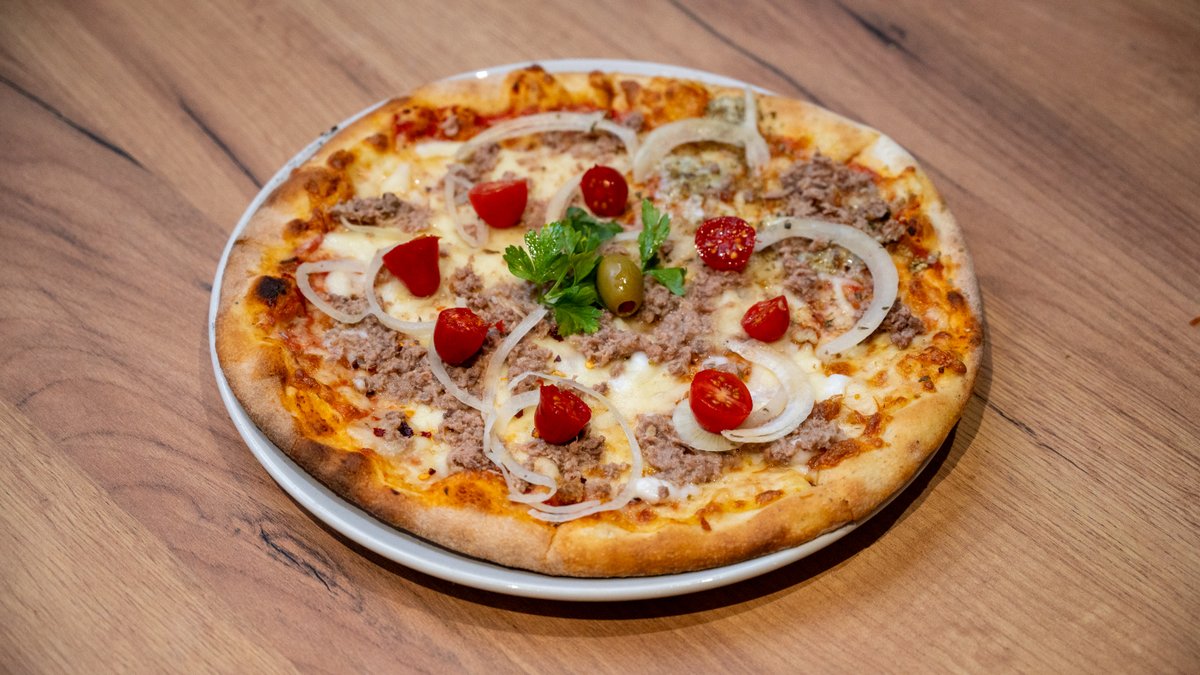 Pelat, posni kačkavalj, tunjevina, povrće, origano