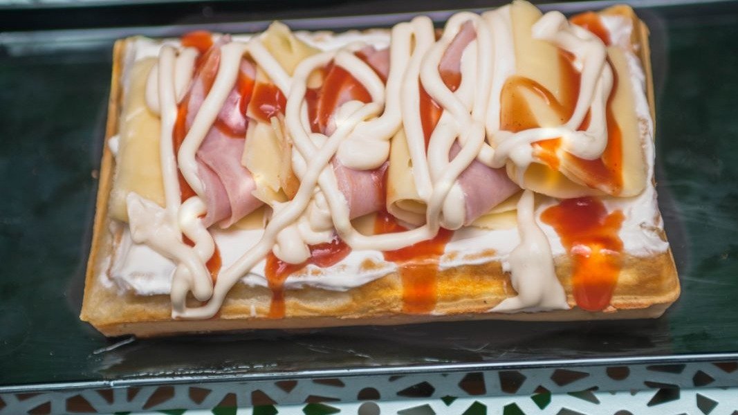 Waffle, šunka, pavlaka, kačkavalj, kečap