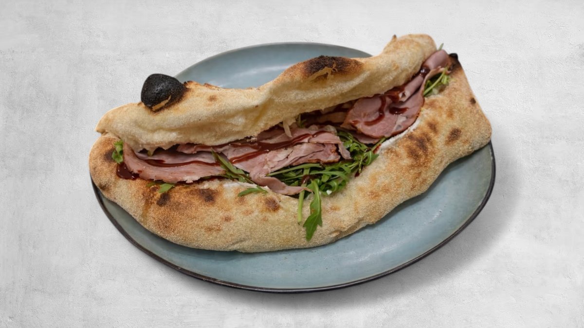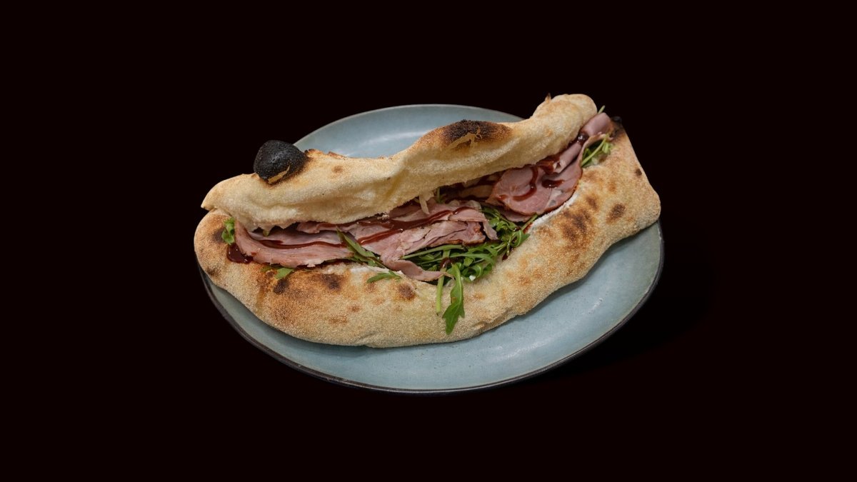 Pistaći salsa, kačkavalj, mortadela, bufala mozzarella, mleveni pistaći, crne masline