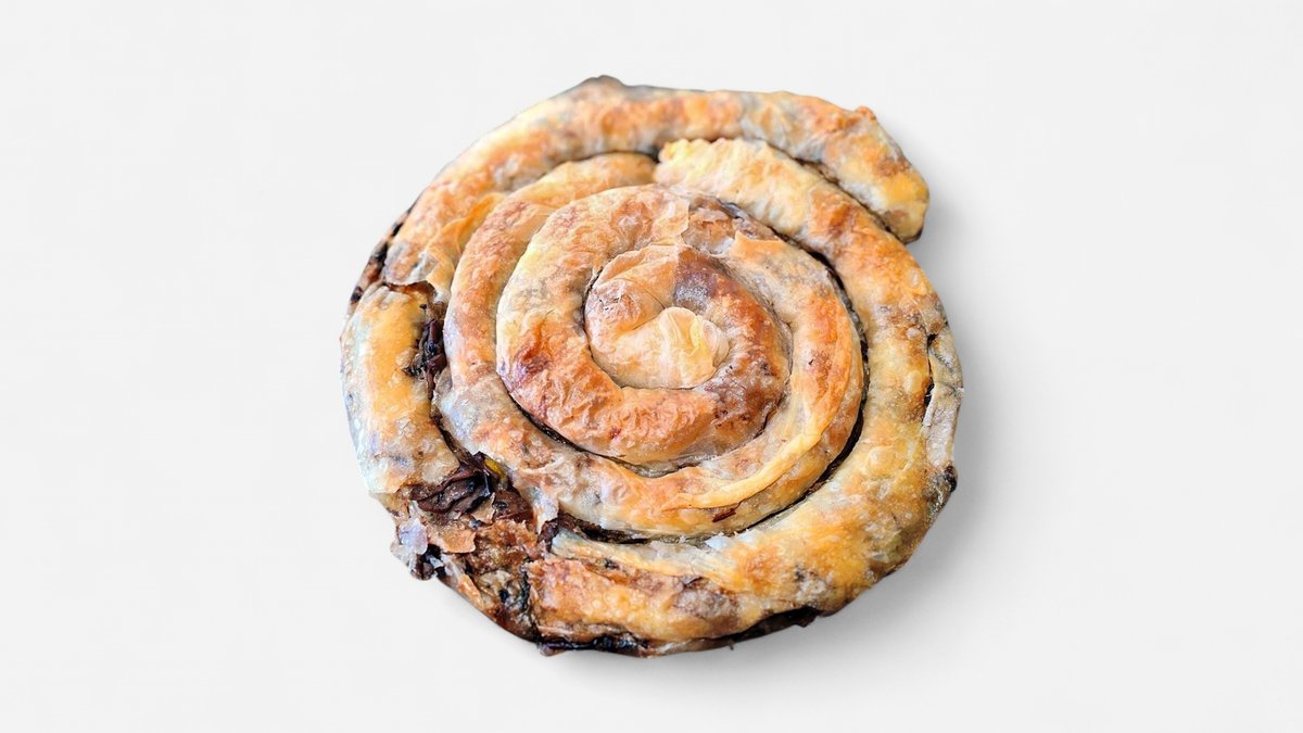 Velika domaća pita sa razvučenim korama. Prečnik 30cm.