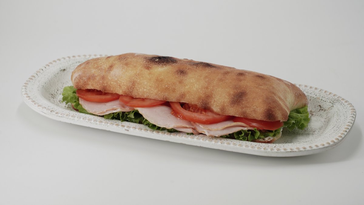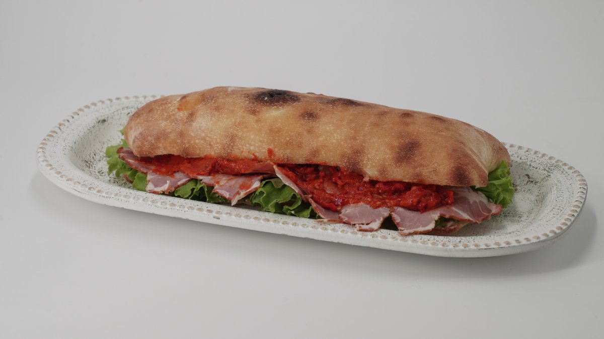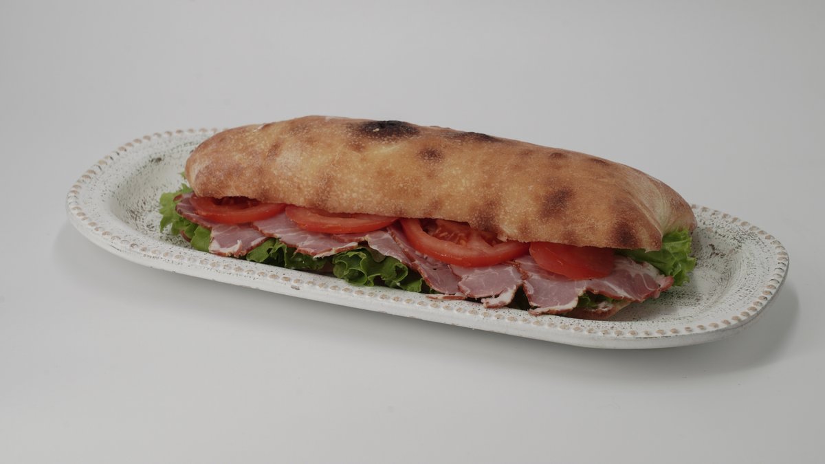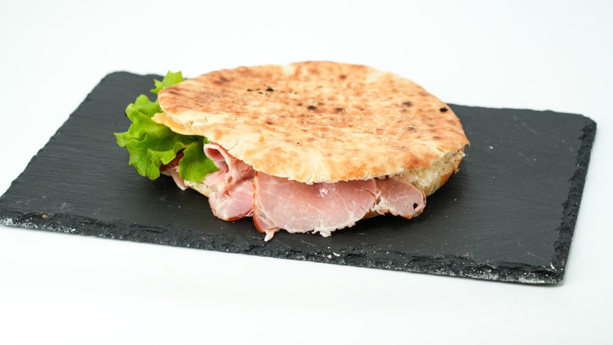 Domaća lepinja na patosu,šunka,namaz,kačkavalj ,zelena salata,paradajz,krastavac