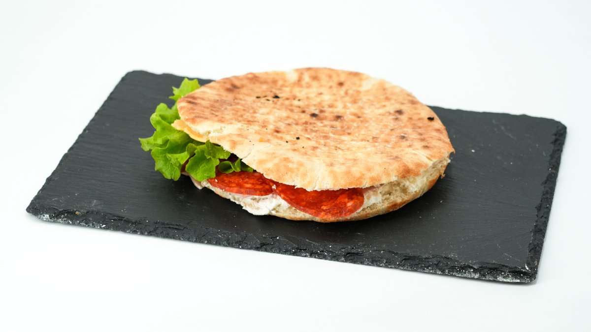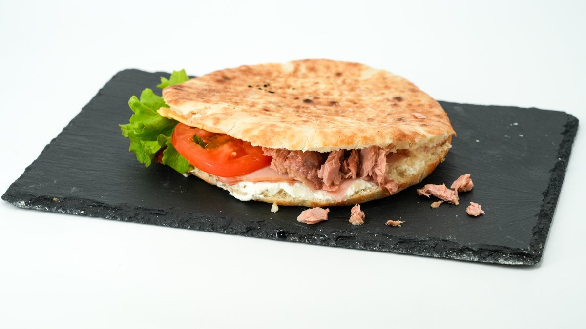 Domaća lepinja na patosu,namaz,kačkavalj ,tuna,zelena salata,paradajz,krastavac