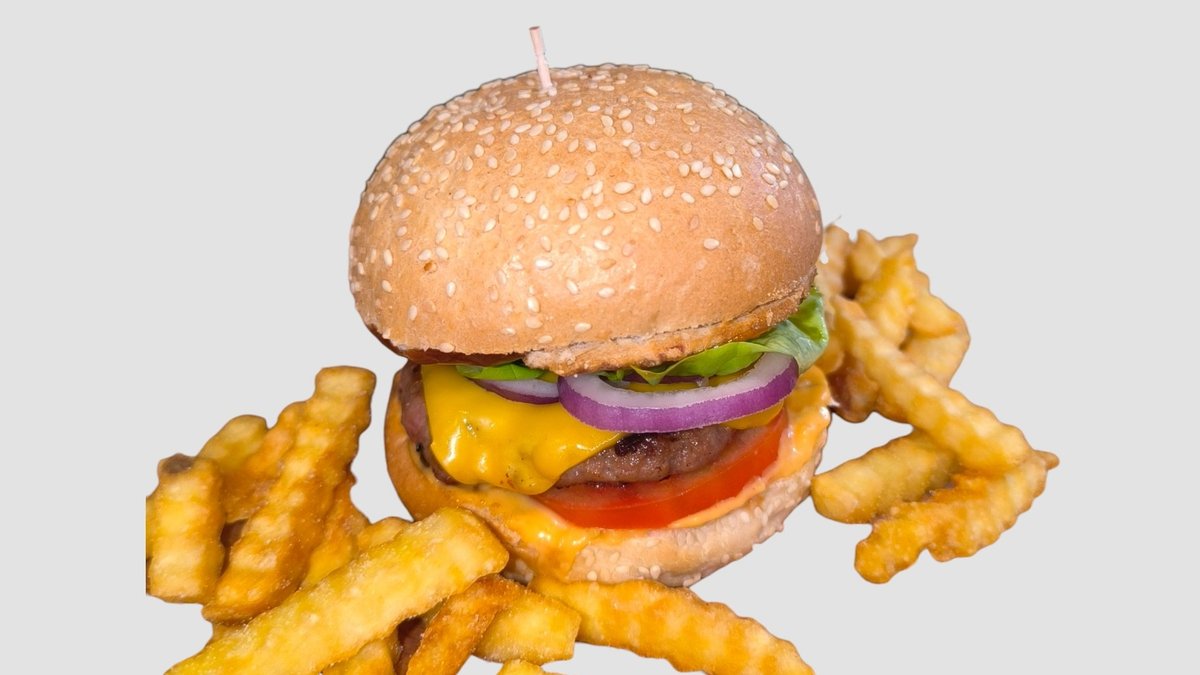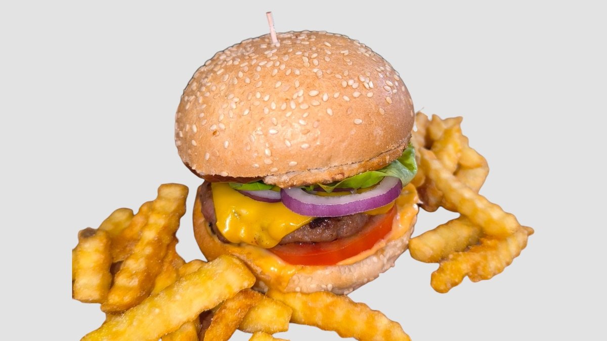 2x 100 gr junećeg mesa,slanina,čedar,paradajz,crveni luk,zelena salata ,krastavčići,burger sos,bbq sos