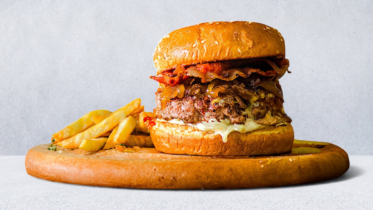 Dupli smash burger 2x90g junetine, čeder, slanina, brioš zemička, NY burger sos, sos sa slačicom, luk