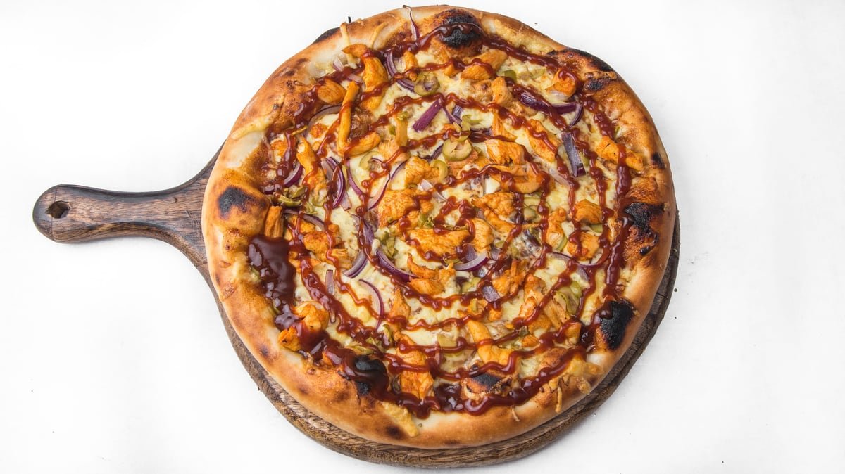 Paradajz sos, BBQ sos, pileće belo, goveđa pršuta, crni luk, kačkavalj