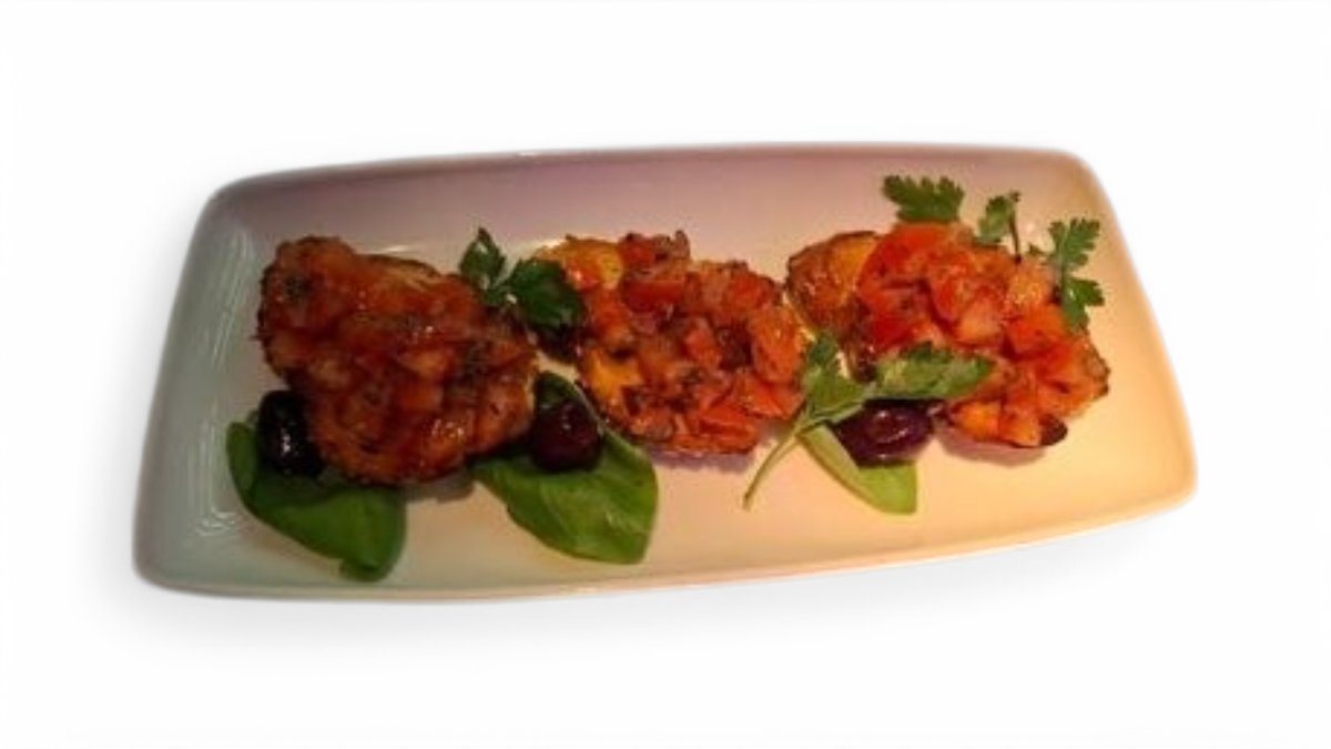 Paradajz, bosiljak, maslinovo ulje, tost sa ukusom belog luka