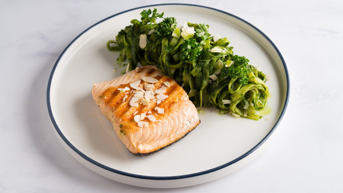 Grilovani file lososa, taljatele u kremastom puter-sosu sa aromatičnim biljem