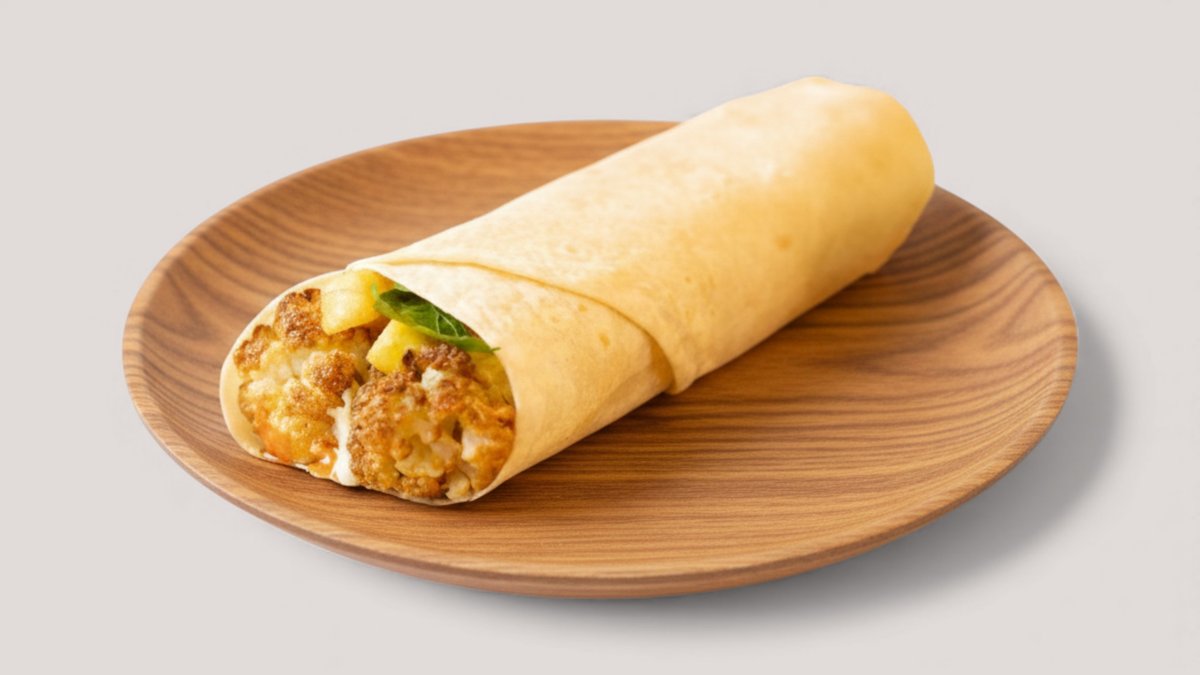 mekane tavuk pileće kockice, hrskava coleslaw salata, kiseli krastavac, pomfrit, kečap, sa sosom po izboru na bazi belog luka ili majoneza, sve umotano i tostirano u lavaš hlebu