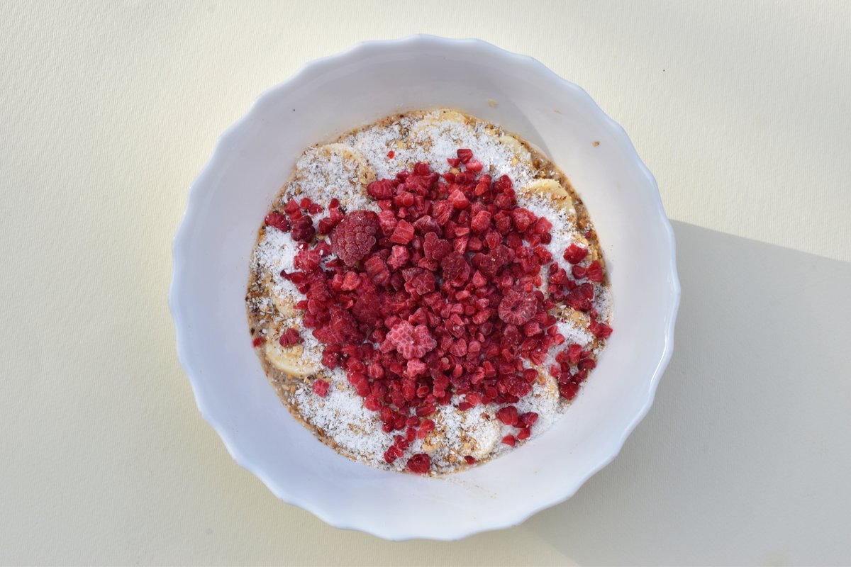 Sastav: kinoa, Razumko nugat krem BEZ ŠEĆERA, + 3 dodatka (izaberi dodatke ispod) Sastav Razumko nugat krema BEZ ŠEĆERA: urme, lešnik, sirovi oraganski kakao, voda, himalajska so. *Vegan, Bez glutena, Bez dodatog šećera, Bez industrijskih sastojaka, Posno!
