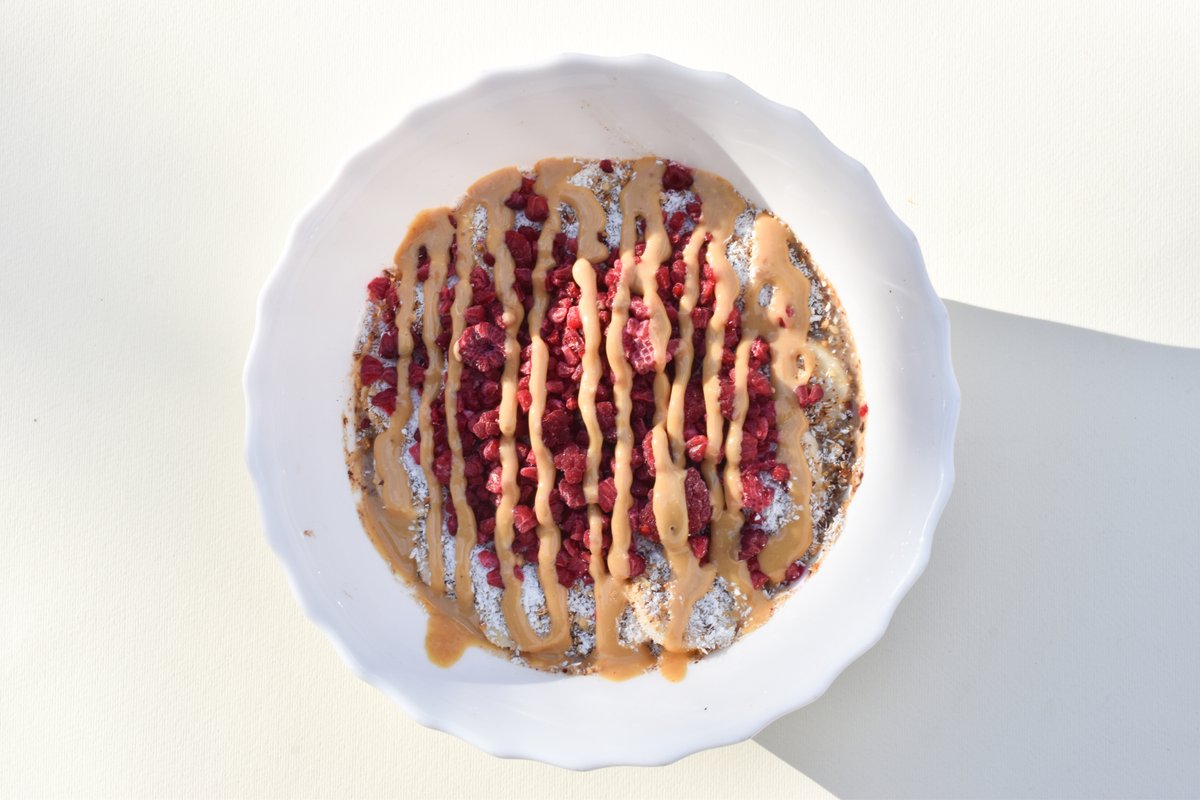 Sastav testa: banana, kinoa, voda, soda bikarbona bez aluminijuma + Beli Razumko namaz BEZ ŠEĆERA (sastav: urme, lešnik, indijski orah, organski kakao puter, voda, himalajska so). *Vegan, Bez glutena, Bez dodatog šećera, Bez industrijskih sastojaka, Posno!