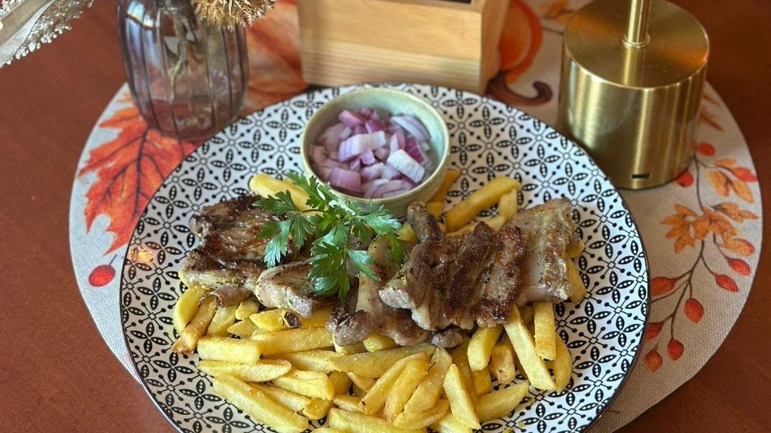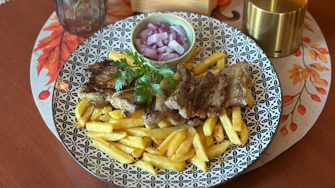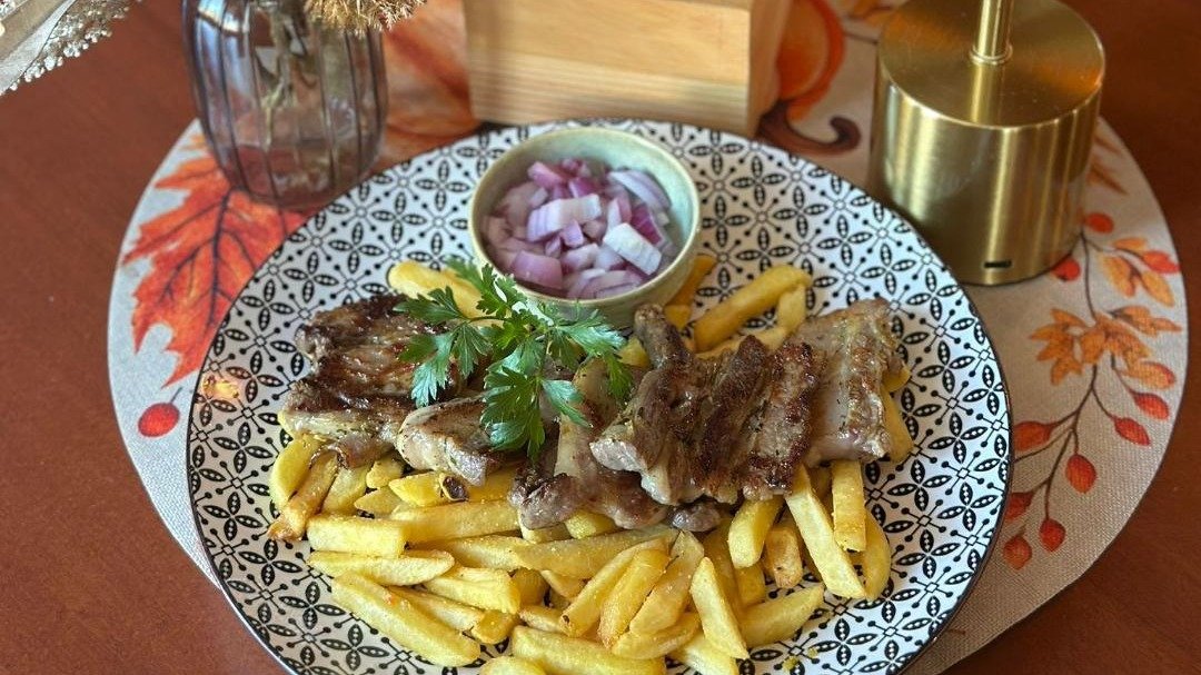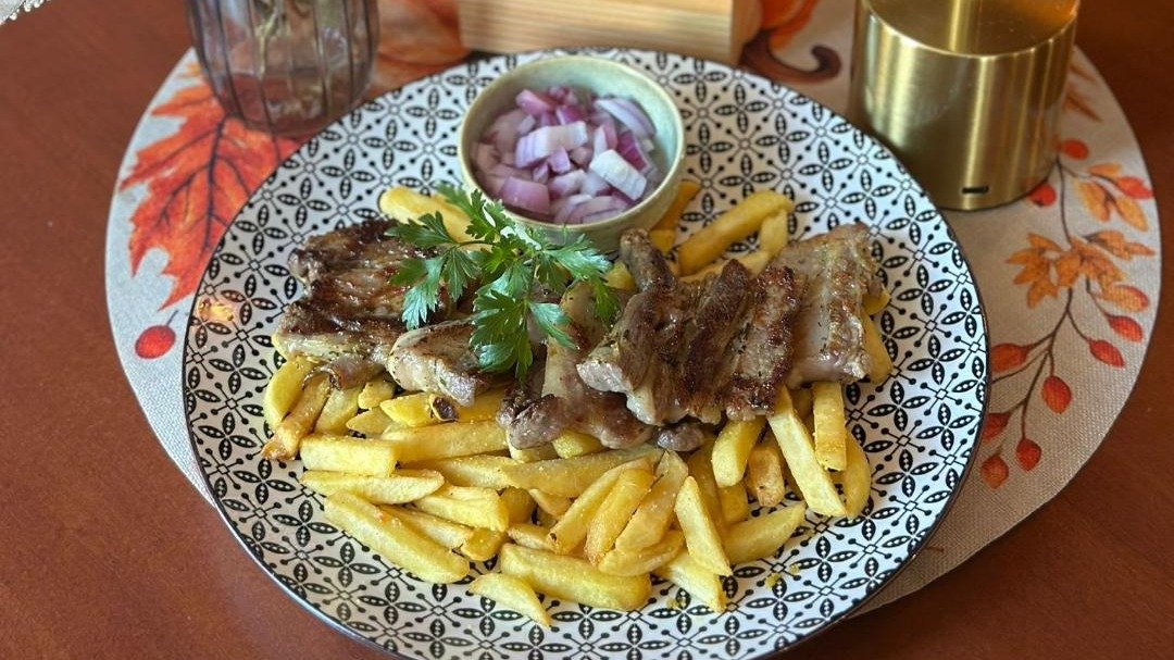 400g rebaraca bez koske, pomfrit, kajmak