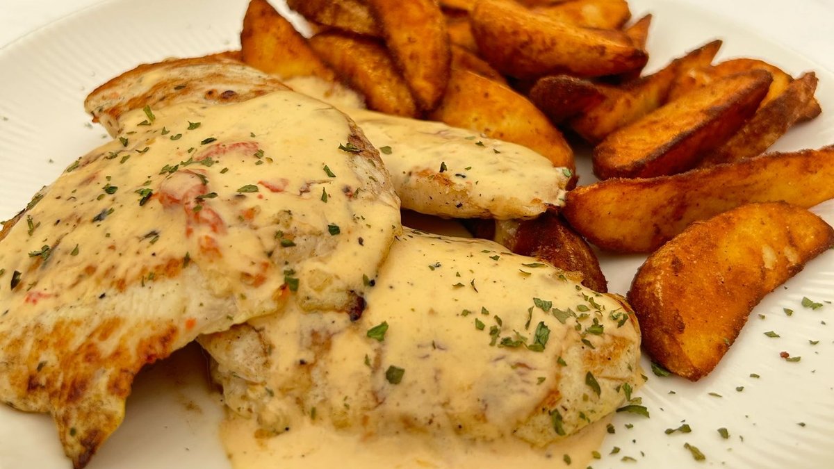 Pileći file u ajvar-kajmak sosu sa vedžis krompirom