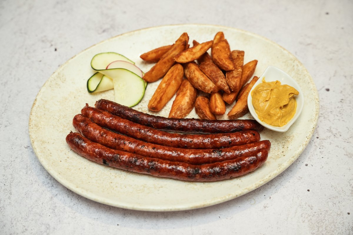 Kobasica punjena kačkavaljem, pomfrit ili vedžis krompir