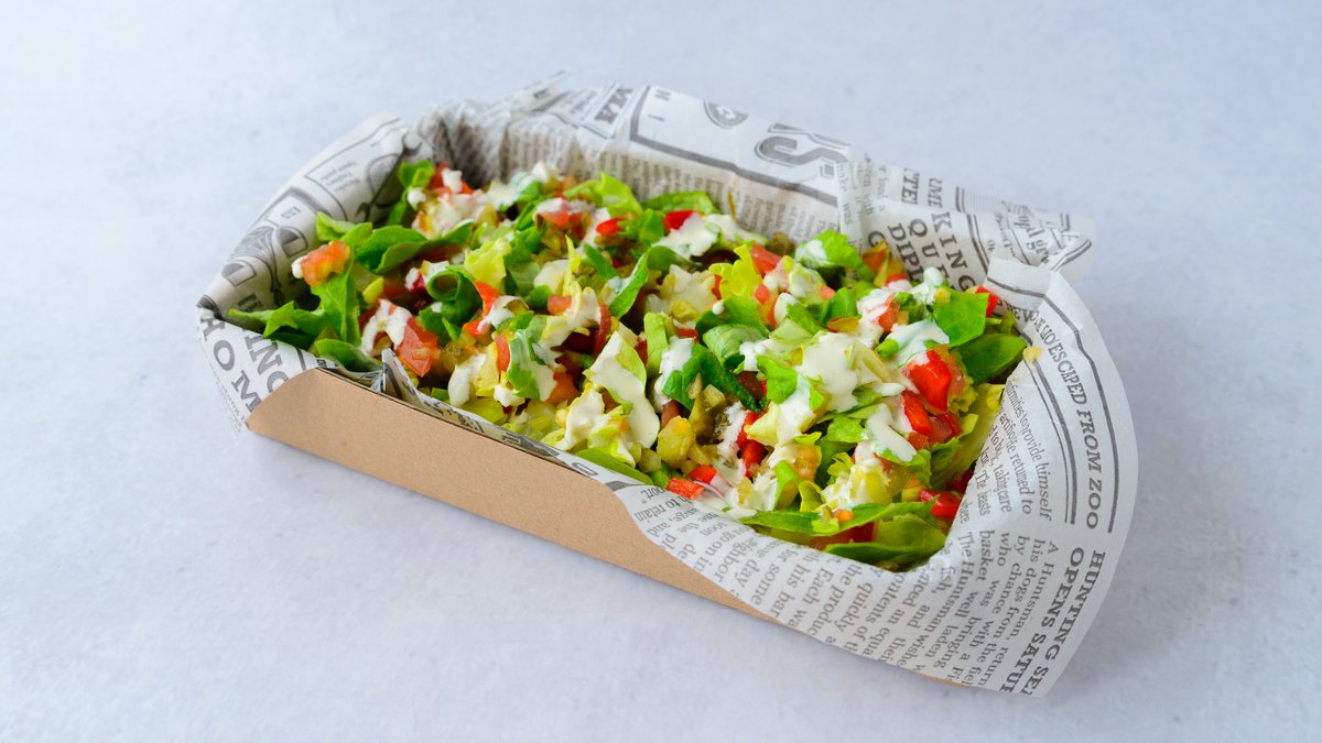 Zelena salata, kukuruz šećerac, paradajz, kiseli krastavac, paprika, Crunch dresing