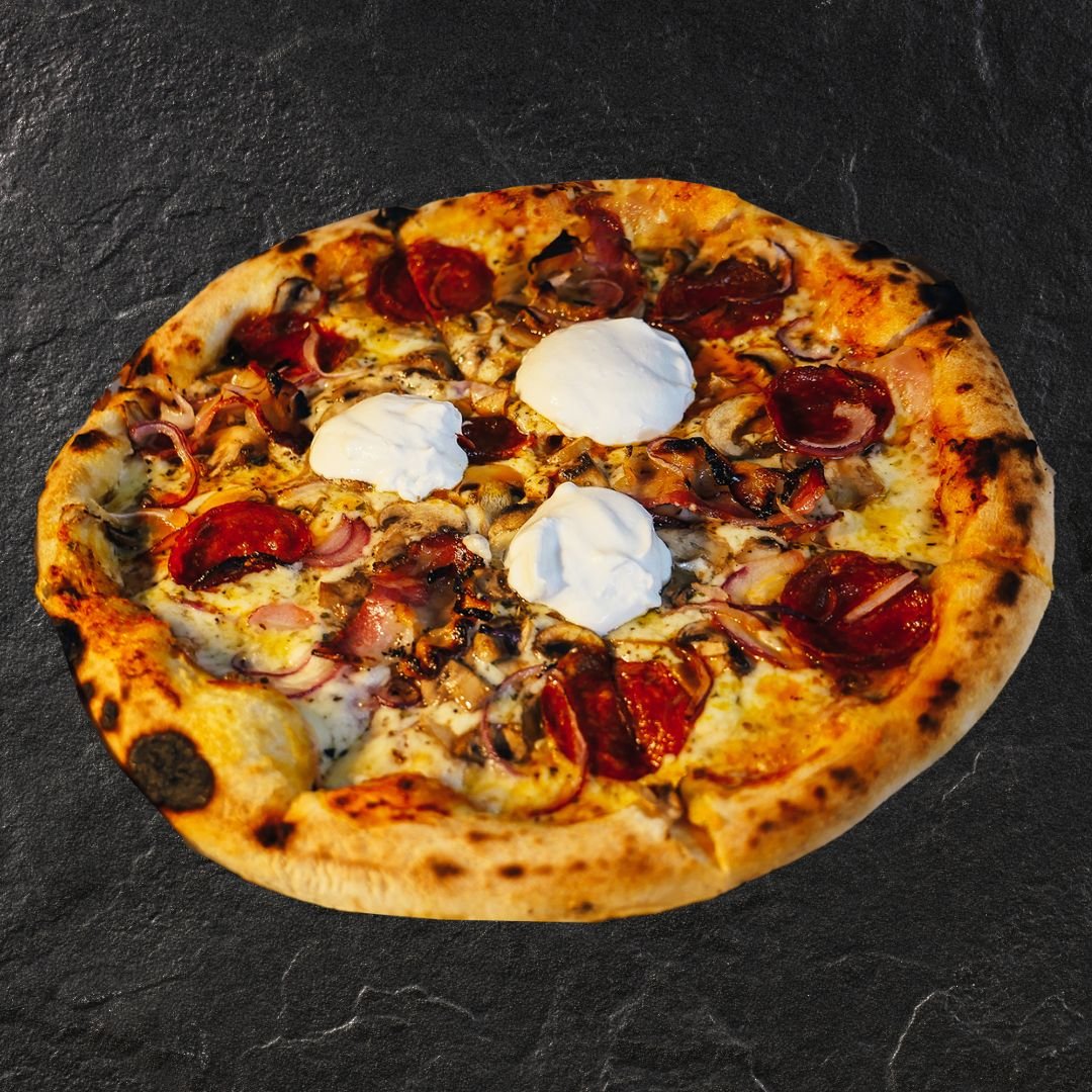 pelat, sir, šunka, gljive, kulen, dimljena slanina, ljubičasti luk, pavlaka