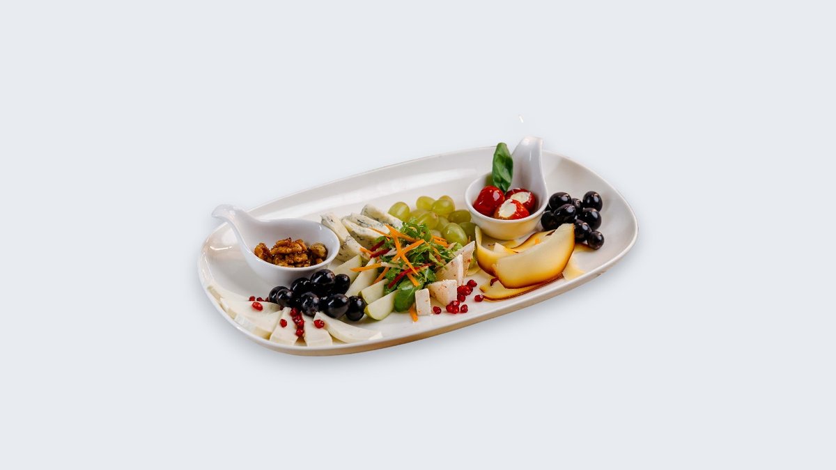 Cheese Platter „Renaissance“ predstavlja pažljivo izabranu kombinaciju vrhunskih sireva i svežih dodataka koji naglašavaju njihovu aromu i teksturu. Gorgonzola donosi punu, kremasto-pikantnu notu, mladi sir nežnost i lakoću, dok dimljeni sir i začinjeni kozji sir daju karakter i dubinu. Sveže bobice grožđa, sočne kriške kruške i hrskavi orasi stvaraju savršen balans slatkog i hrskavog, dok punjene cherry paprike unose dodatnu aromatičnu dimenziju. Lagano začinjena salata povezuje ceo tanjir u skladnu i elegantnu celinu. Idealno predjelo za uživanje u paru, uz čašu vina, ili kao bogat uvod u kompletan obrok.