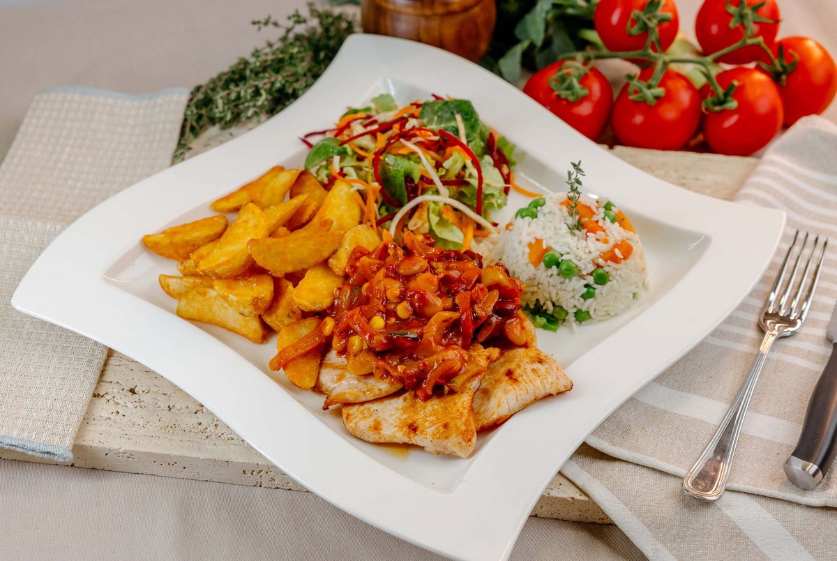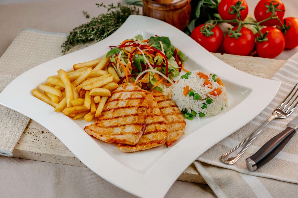 Naša Pileća Salata donosi savršenu ravnotežu svežine i blagih tropskih nota. Hrskava mešavina sveže salate, paprike, cherry paradajza i ljubičastog luka pruža lagan i živopisan osnov, dok zelene masline dodaju suptilnu mediteransku notu. Sočan grilovani pileći file nežno se spaja sa osvežavajućim komadićima ananasa, stvarajući harmoničan kontrast ukusa. Rukola unosi pikantnu svežinu, a kremasti dresing u našem stilu zaokružuje svaki zalogaj. Jelo je upotpunjeno prepečenim tostevima koji dodaju prijatnu hrskavost i čine ovu salatu modernim, raskošnim obrokom.