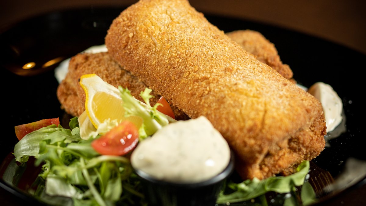 pileći file, pršuta, kajmak, kačkavalj, tartar sos, pomfrit, lepinja