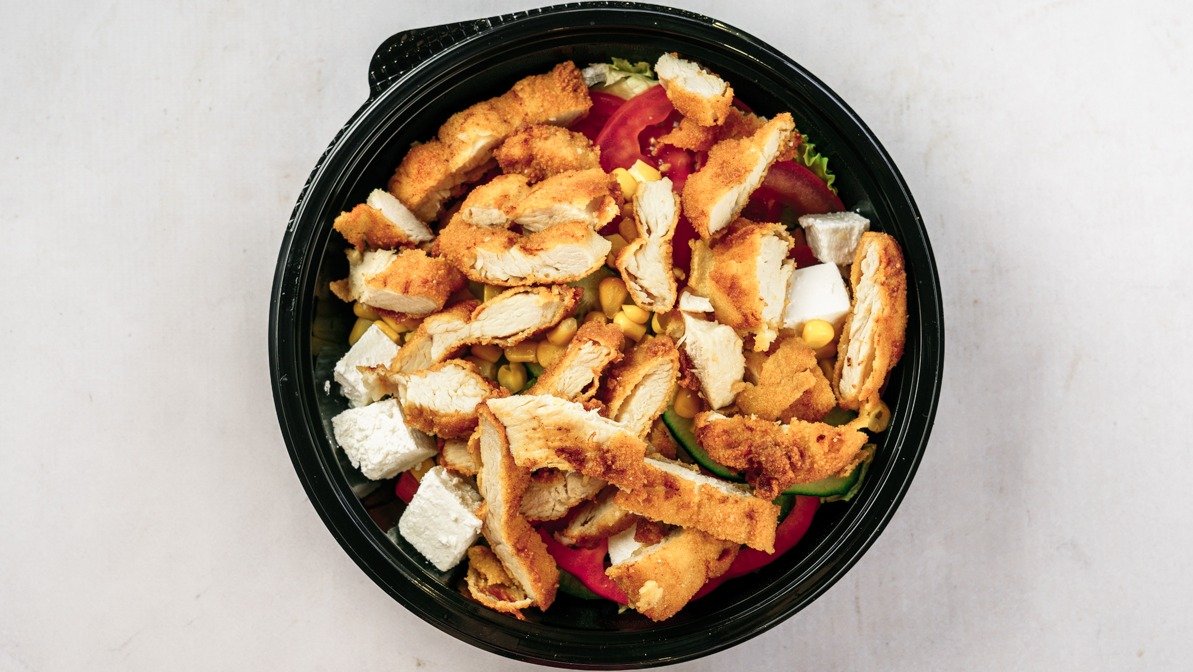 pohovana piletina, sweet chilli, dressing, mix salata, sir