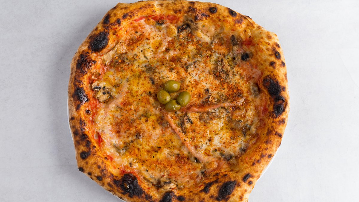 sir, šunka, šampinjoni, kulen, ljuta paprika, kečap, masline