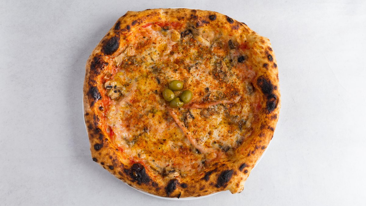 kečap, sir, praška šunka, paprika, paradajz, suvi vrat, feta, šampinjoni, masline, kajmak, origano