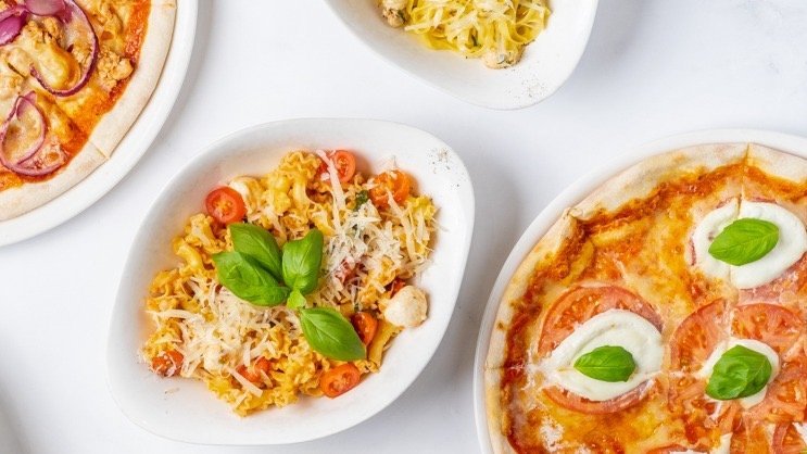 Crispy pizza, pasta and other tasty meals made from fresh and tasty ingredients🍕😋