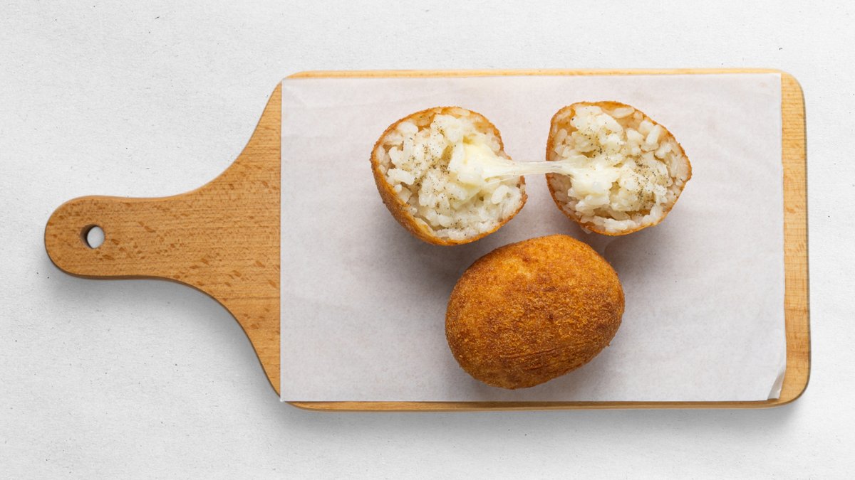 supplì - rímske vyprážané ryžové krokety, s roztopenou mozzarellou v strede