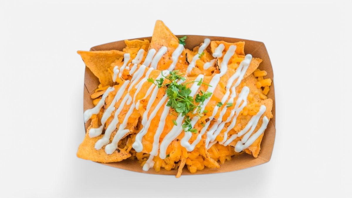 Kukuričné chipsy zapečené s cheddar syrom, smotanou a posypané koriandrom. / obsahuje alergény: 7