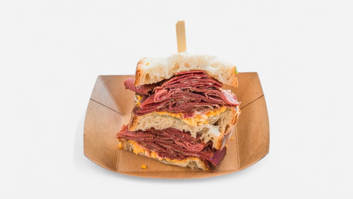 Steakové mäso, kváskový chlieb, dijonský dresing, cheddar syr, kyslá uhorka. / obsahuje alergény: 1,3,7