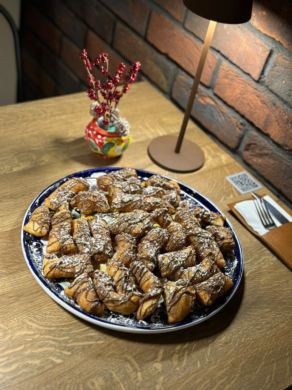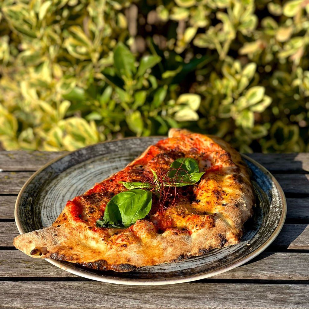 Zatvorený pizzový chlieb, fior di latte, pikantná saláma, gorgonzola, extra panenský olivový olej