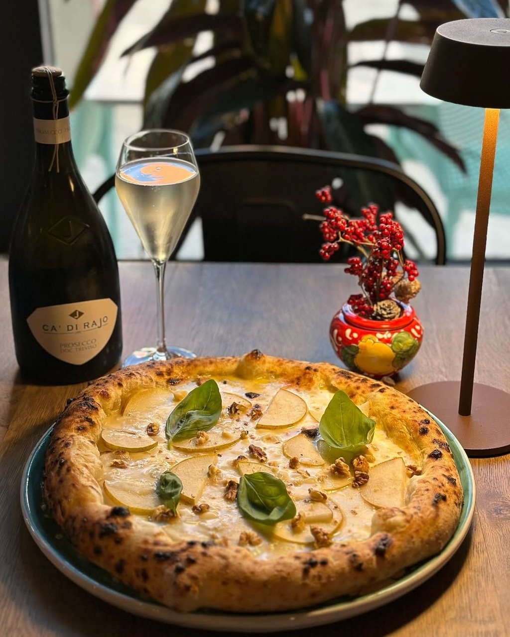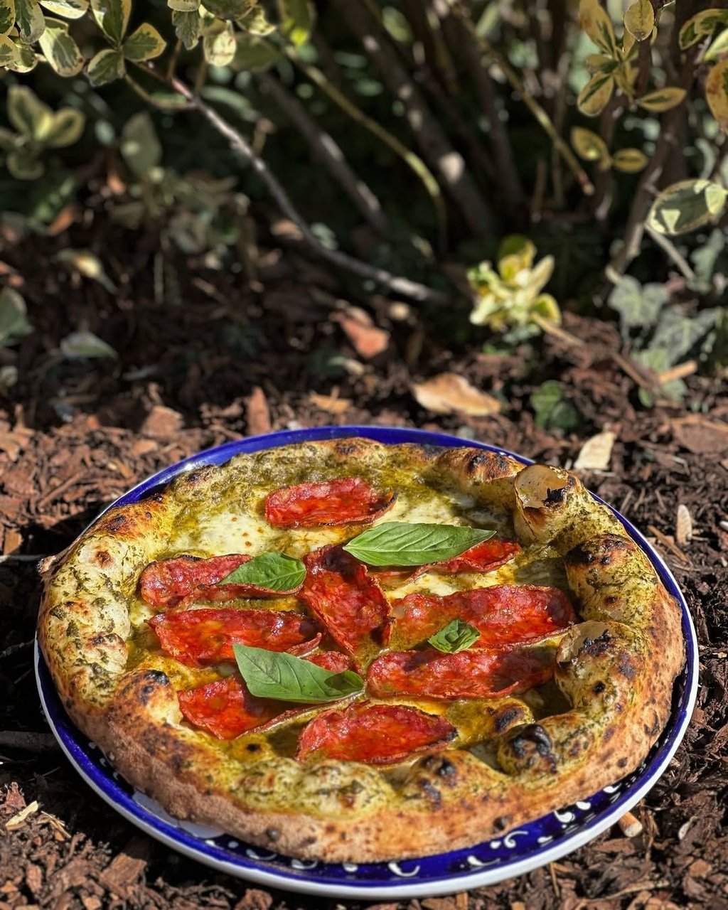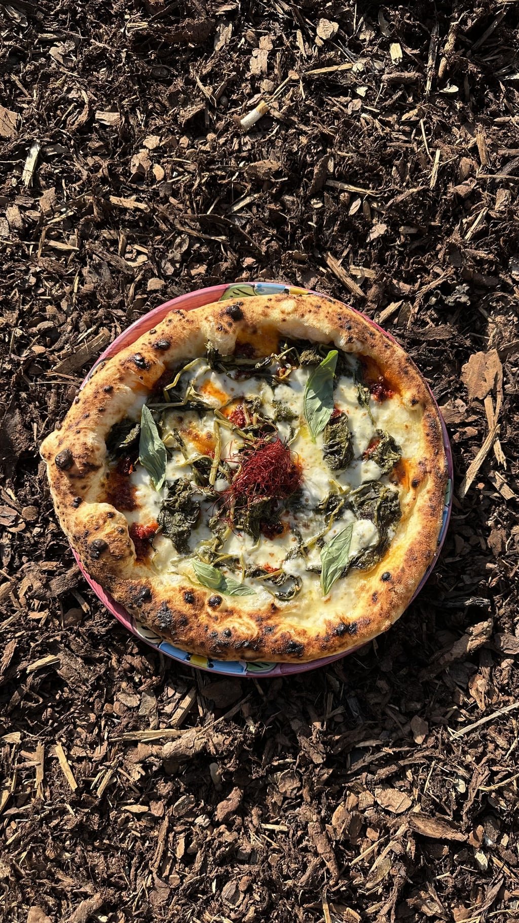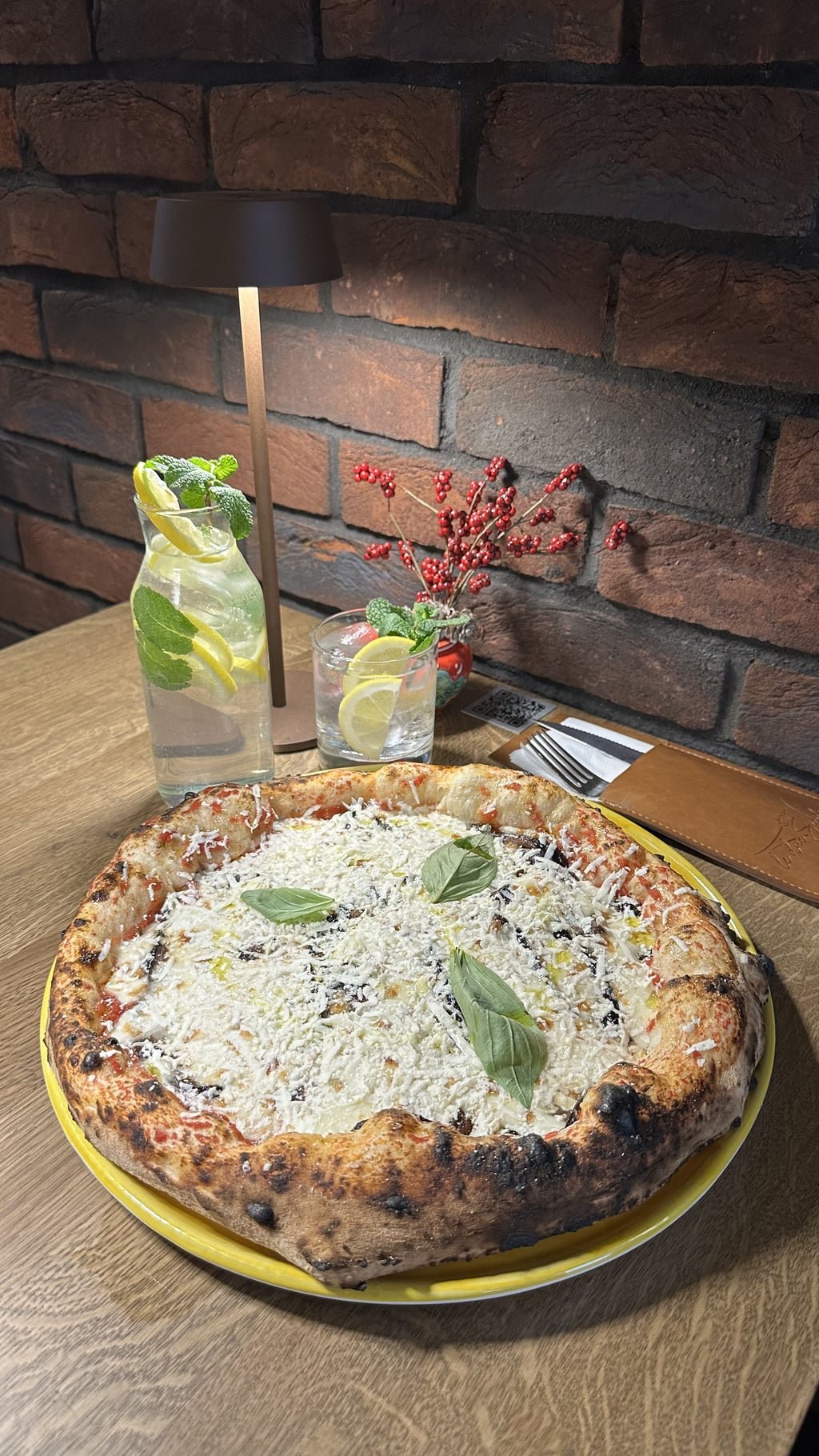 Fior di latte, 'nduja - mäsová pikantná zmes, grana padano, friarielli - talianska zelenina, extra panenský olivový olej