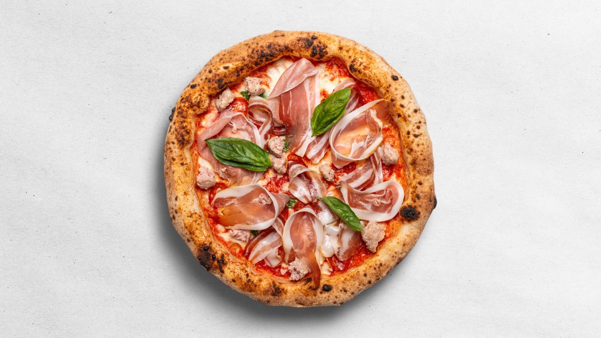 paradajkový základ, provola, salsiccia, speck, slanina 550g / obsahuje: 1, 7