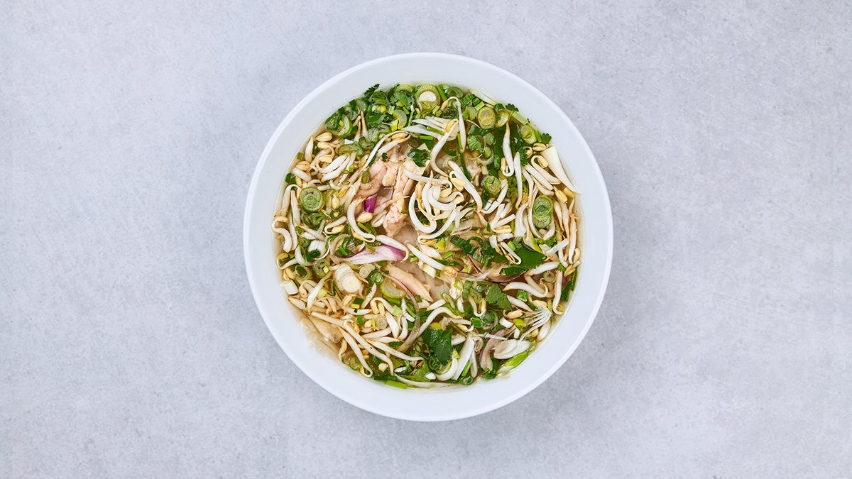vývar, koriander, sójové klíčky, cibuľa, široké ryžové rezance 0,75l / obsahuje: 4