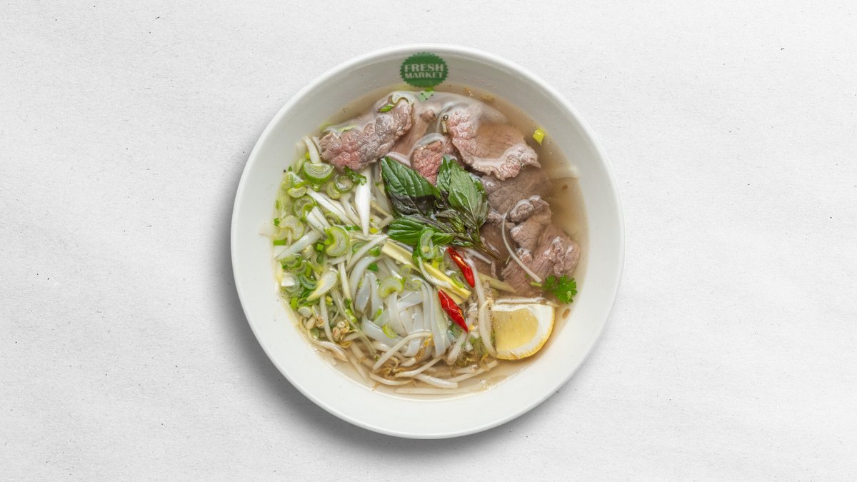 tradičný vietnamský vývar s ryžovými rezancami, koriandrom a jarnou cibuľkou / výber mäsa / 1