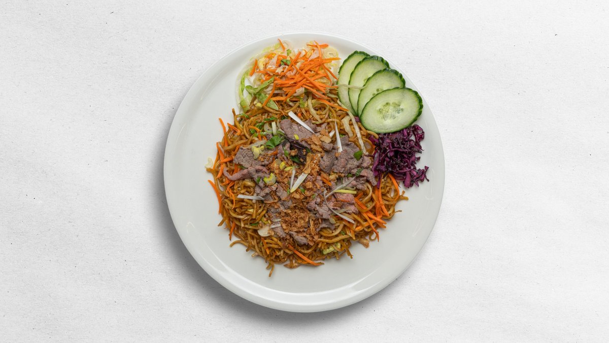restované ryžové rezance, vajíčko, zelenina, chrumkavá cibuľka / druh mäsa podľa výberu / 1,2,3,6