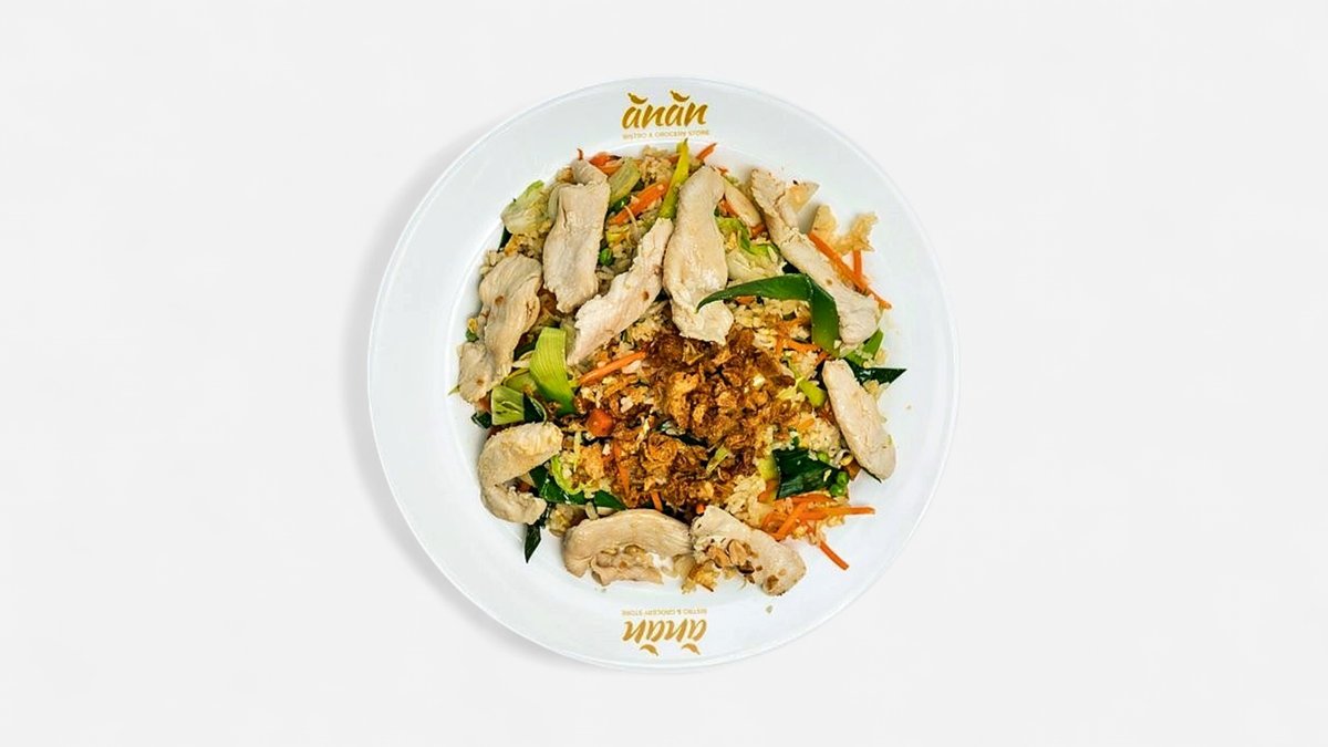 restovaná ryža, vajíčko, zelenina, chrumkavá cibuľka / druh mäsa podľa výberu / 1,2,3,6
