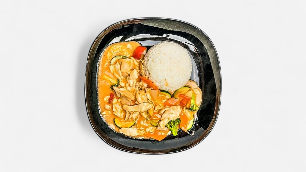 Kuracie prsia na šťave so zeleninou a hubami, kari omáčka, kokosové mlieko / mäso podľa výberu / 2,7