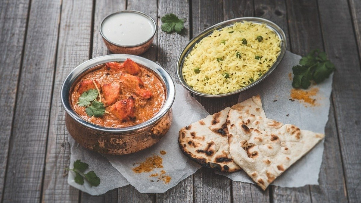 Kuracie mäso, krémová omáčka, tradičné indické korenie, ryža alebo naan. Pálčivosť: 1 350g / obsahuje: 7