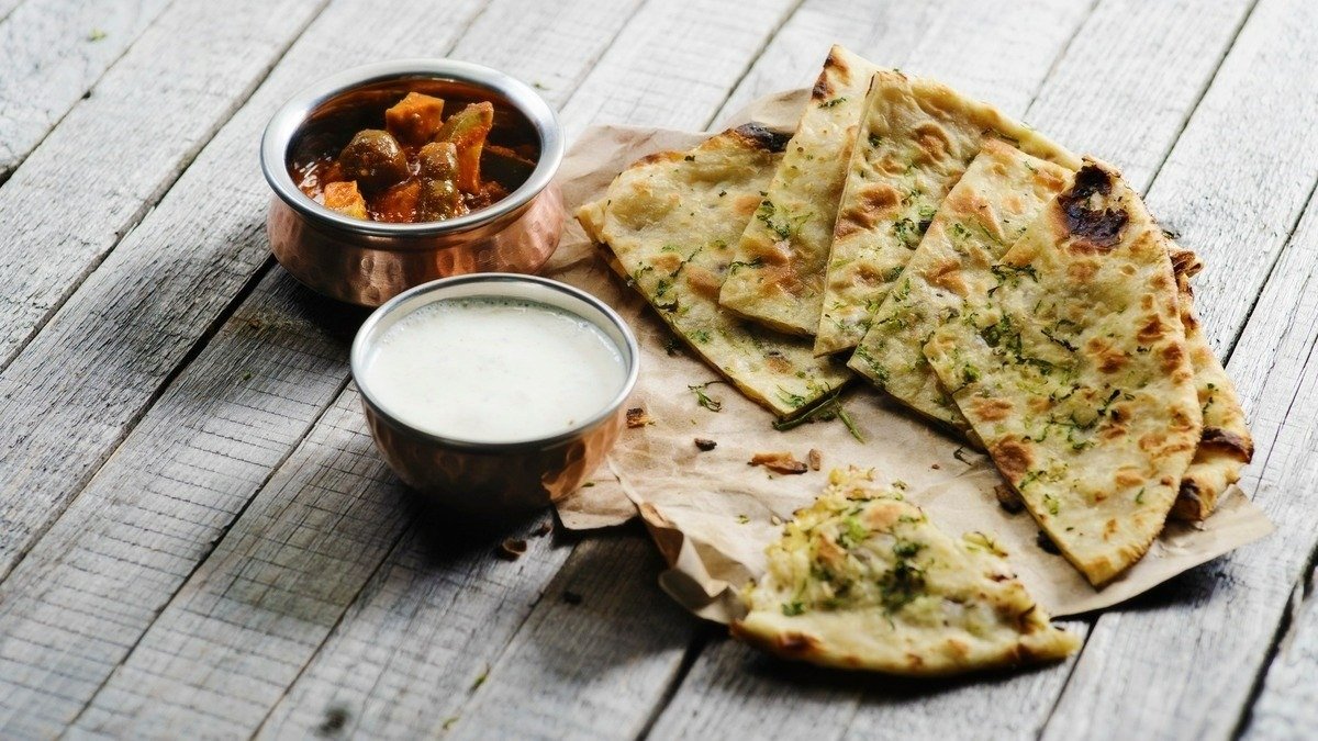 Tradičný indický chlieb s maslom a cesnakom. / obsahuje: 1,7