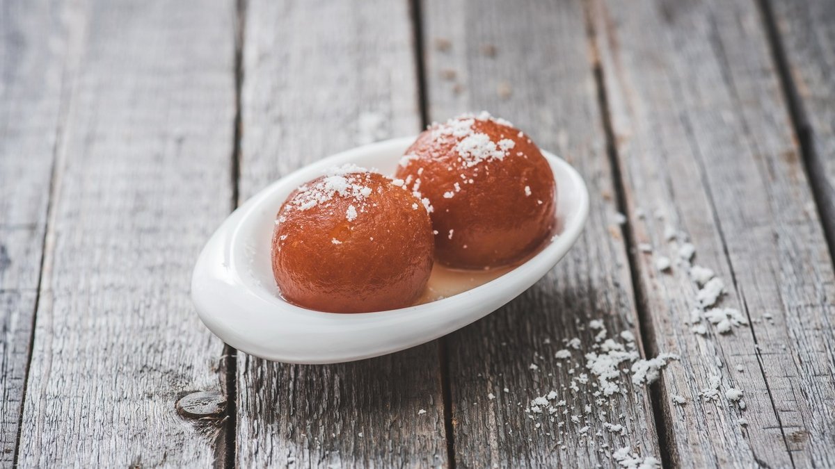 Indický tradičný dezert, vypražené cestovinové guličky, sladký sirup.