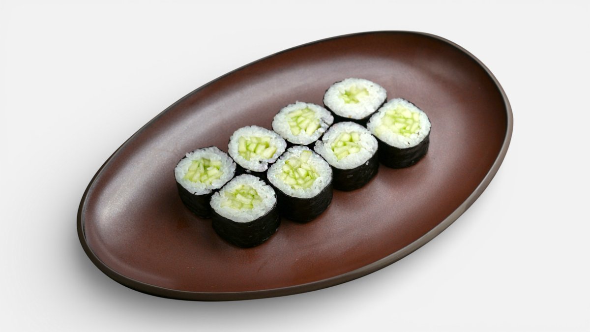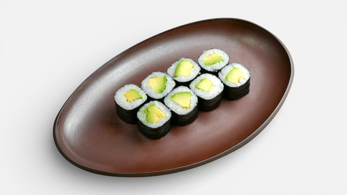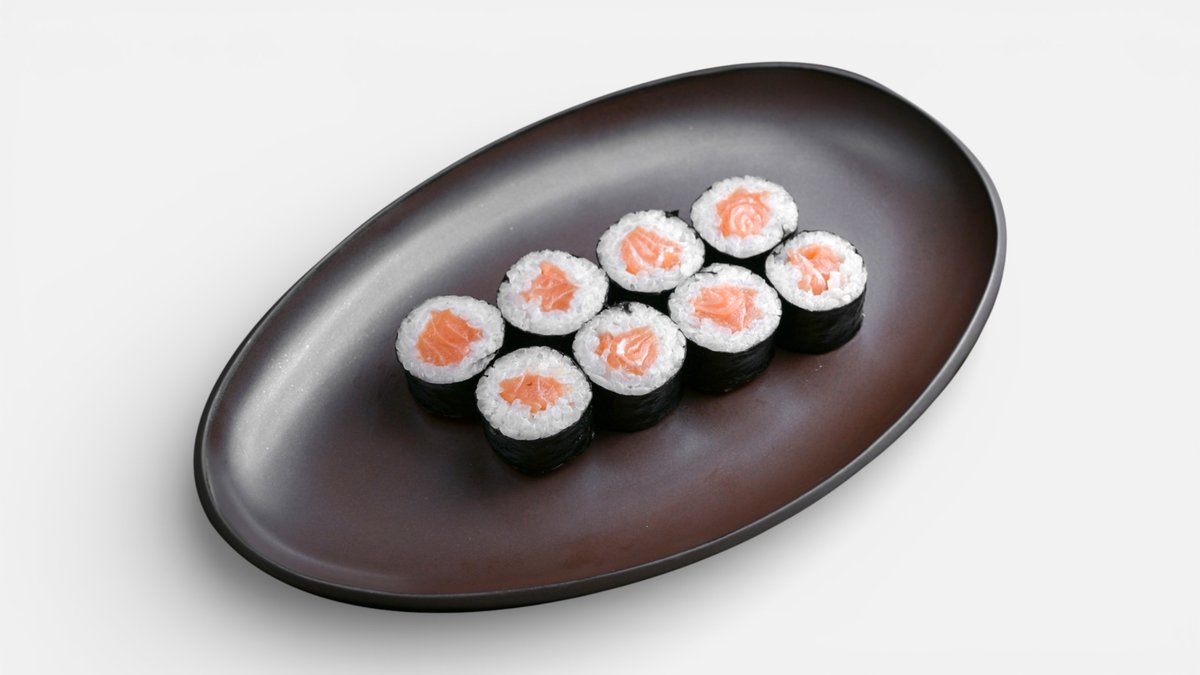 nori, ryža, losos, varená kreveta, unagi omáčka, syr Philadelphia.