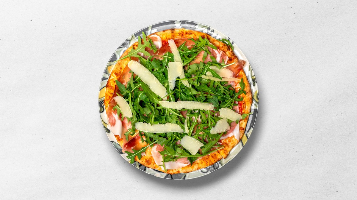 parmská šunka, čerstvé paradajky, pizza chlieb 300 g / obsahuje: 7
