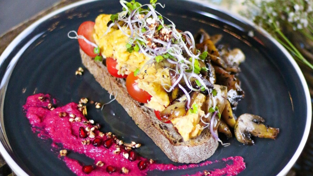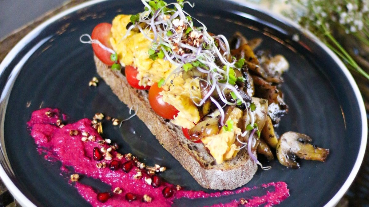 Hrianka, guacamole, cherry paradajky, vajíčko benedikt, avokádo, granátové jablko, cviklový humus, korenie, 230g obsahuje alergény 1,3,
