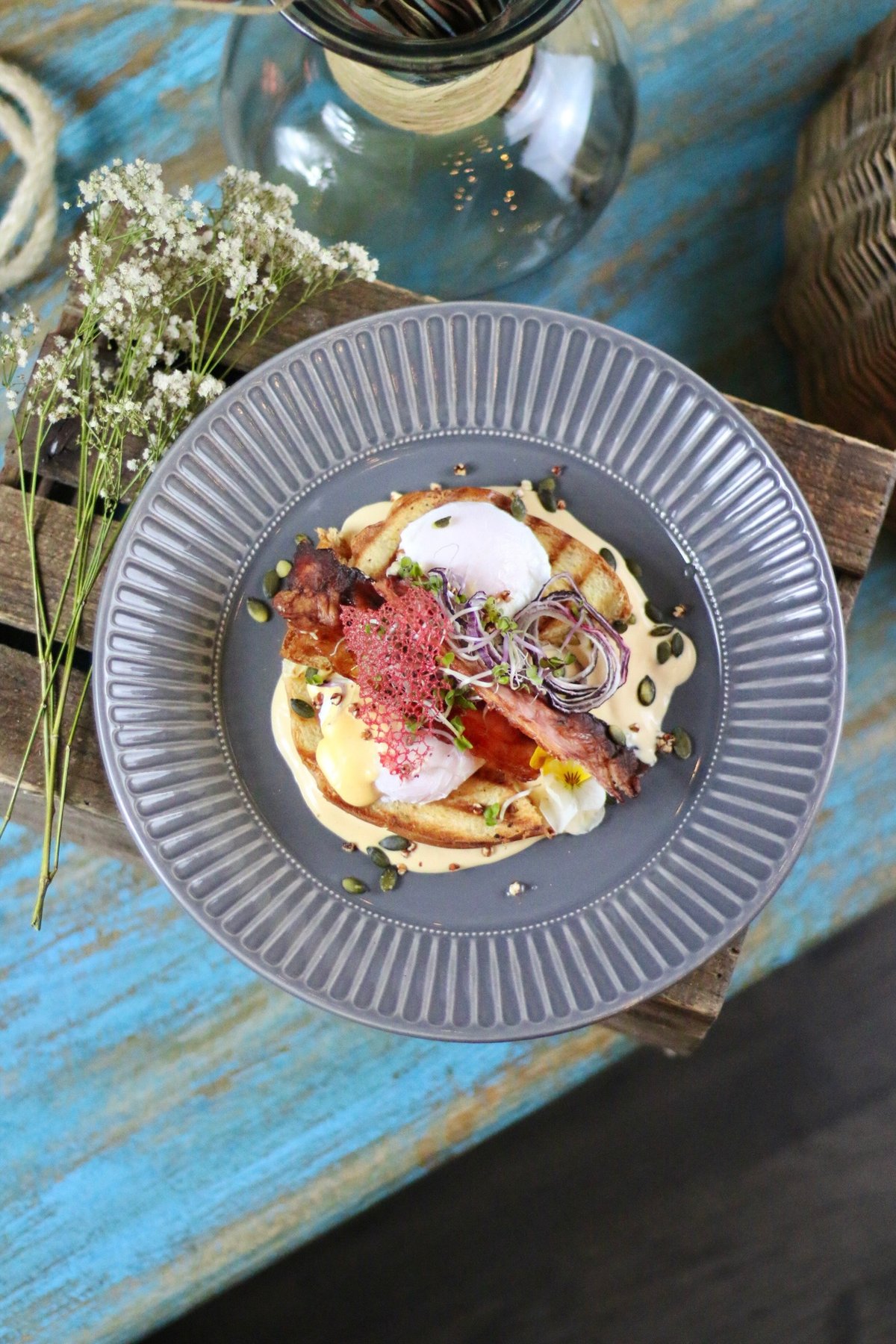 brioška pečivo, holandská omáčka, vajíčko benedikt, slanina, tekvicové semienka, červená cibuľka, korenie 280g obsahuje alergény 1,3,7